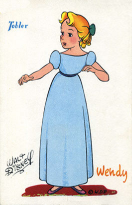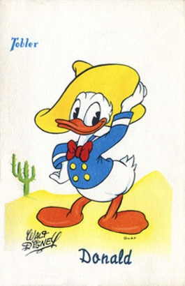 Notes: The Tobler Company (now Toblerone) published these postcards during the 1950s, and distributed them by including the cards in bars and boxes of chocolates. Almost all of the Disney characters, even insignificant ones, up to and including 'Lady and the Tramp' (1955) are depicted on these cards.